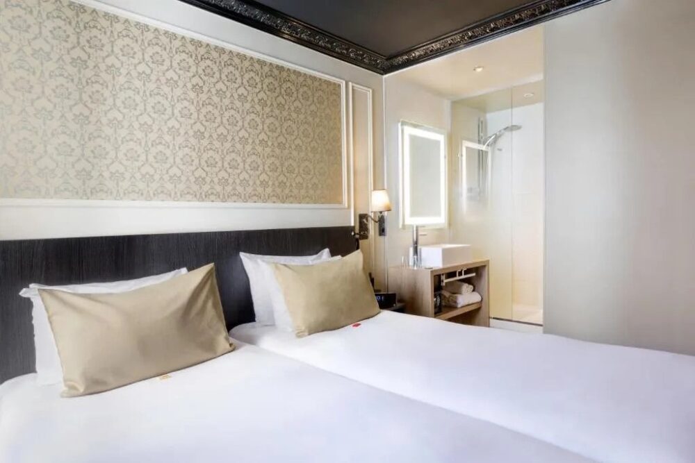 Our twin room is designed for comfort and relaxation, featuring two cozy single beds in a peaceful, inviting space. With its tasteful decor and calming ambiance, it’s the ideal choice for friends or colleagues looking to unwind after a day of discovering the beauty of Montmartre. Located in the heart of the district, this room offers a tranquil retreat while keeping you close to the vibrant Parisian atmosphere.